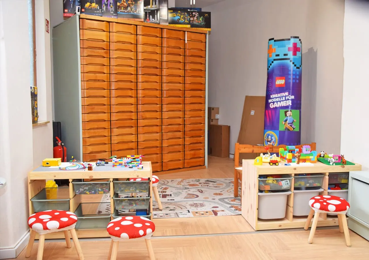 Christian Riemer ist damit seiner größten Leidenschaft gefolgt: dem Bauen und Sammeln von Lego. Gleichzeitig war ihm von Beginn an wichtig, mehr als nur einen Einkaufsladen zu kreieren. „Lego und Barista-Ecke“ nennt er sein Konzept. Während die Kinder in der Legowelt stöbern oder in der Kinderecke selbst kreativ werden, können die Mütter und natürlich auch alle anderen Gäste entspannt einen Café trinken – und der soll auch schmecken. Riemer hat dafür extra einen Kurs bei einem Barista-Weltmeister gemacht.