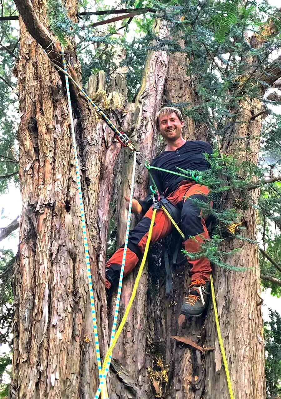Noah Arnold ist zudem ausgebildeter „European Tree Worker". Das europaweit geltende Zertifikat beinhaltet das Wissen über Baumbiologie, Pflanzenbestimmung, Baumkontrolle, Baumpflanzung sowie Baumpflegemaßnahmen wie Kronensicherung und Schnittmaßnahmen, inklusive Arbeitssicherheit und Rechtsgrundlagen. Genau darum geht es bei seiner Arbeit.